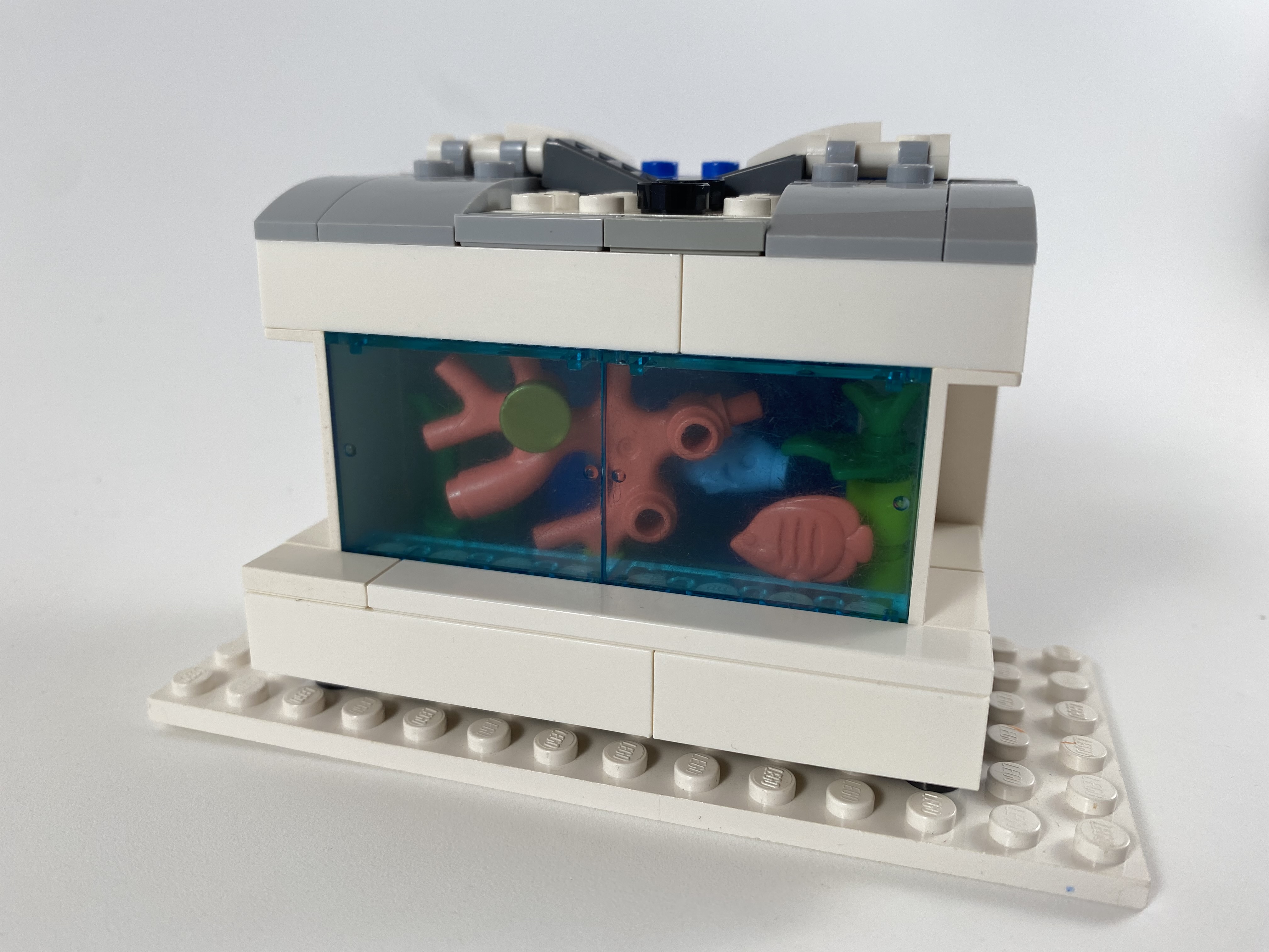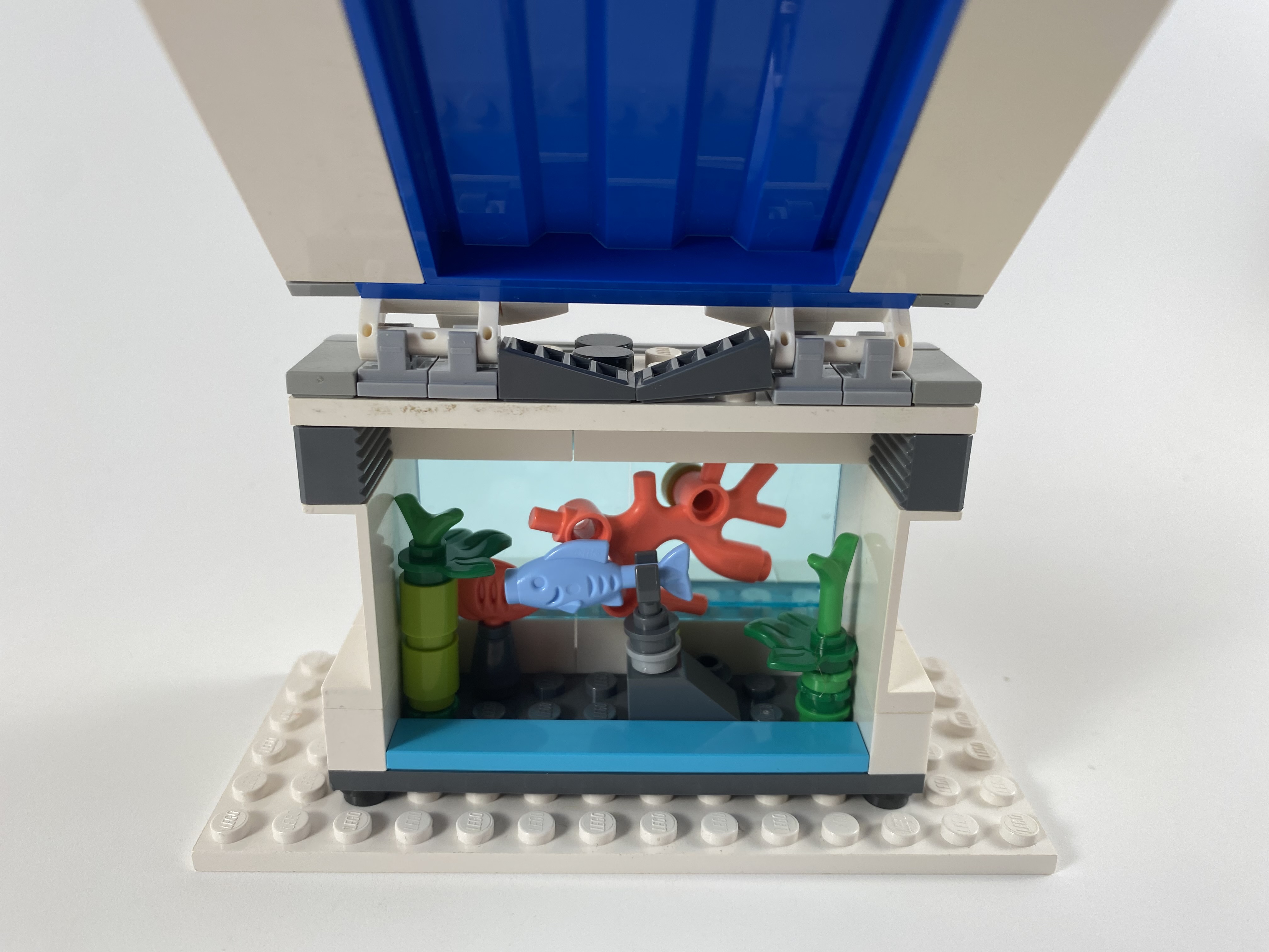 A couple fishies swim about in this aquarium, which will be put into one of Evelyn's restaurants. No Zebra Mussels allowed.
