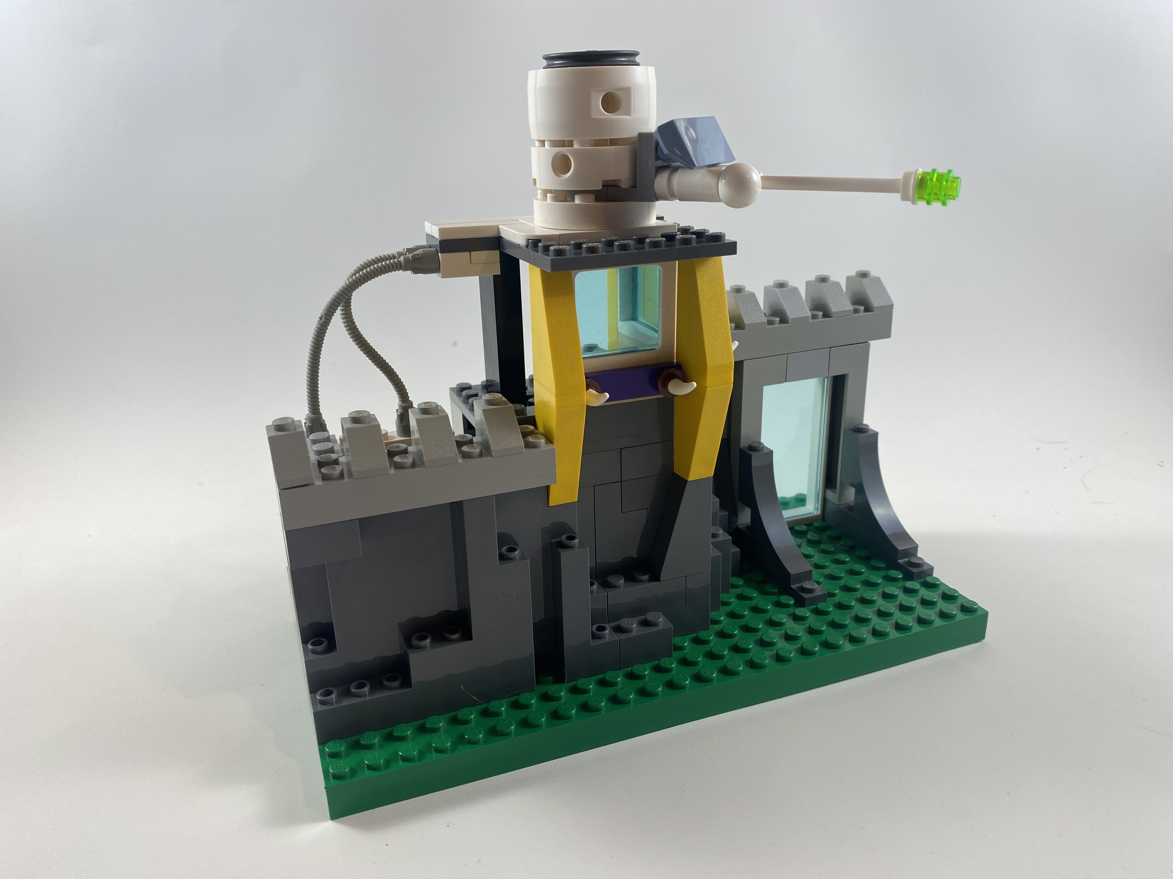 Cole sits in his energy throne, and controls his energy lightning shooter with his mind. He can raise and lower the forcefield too, if he wants.