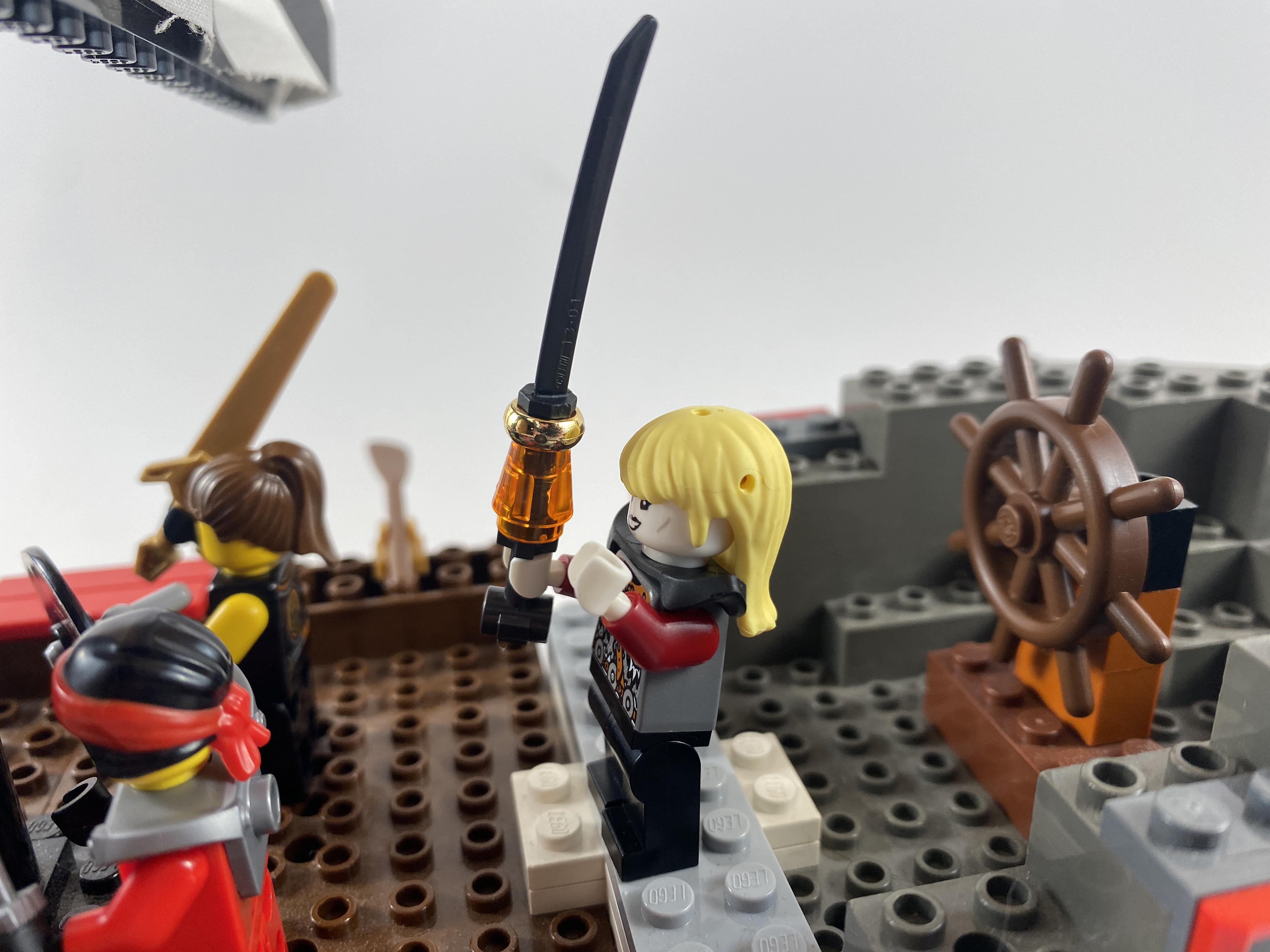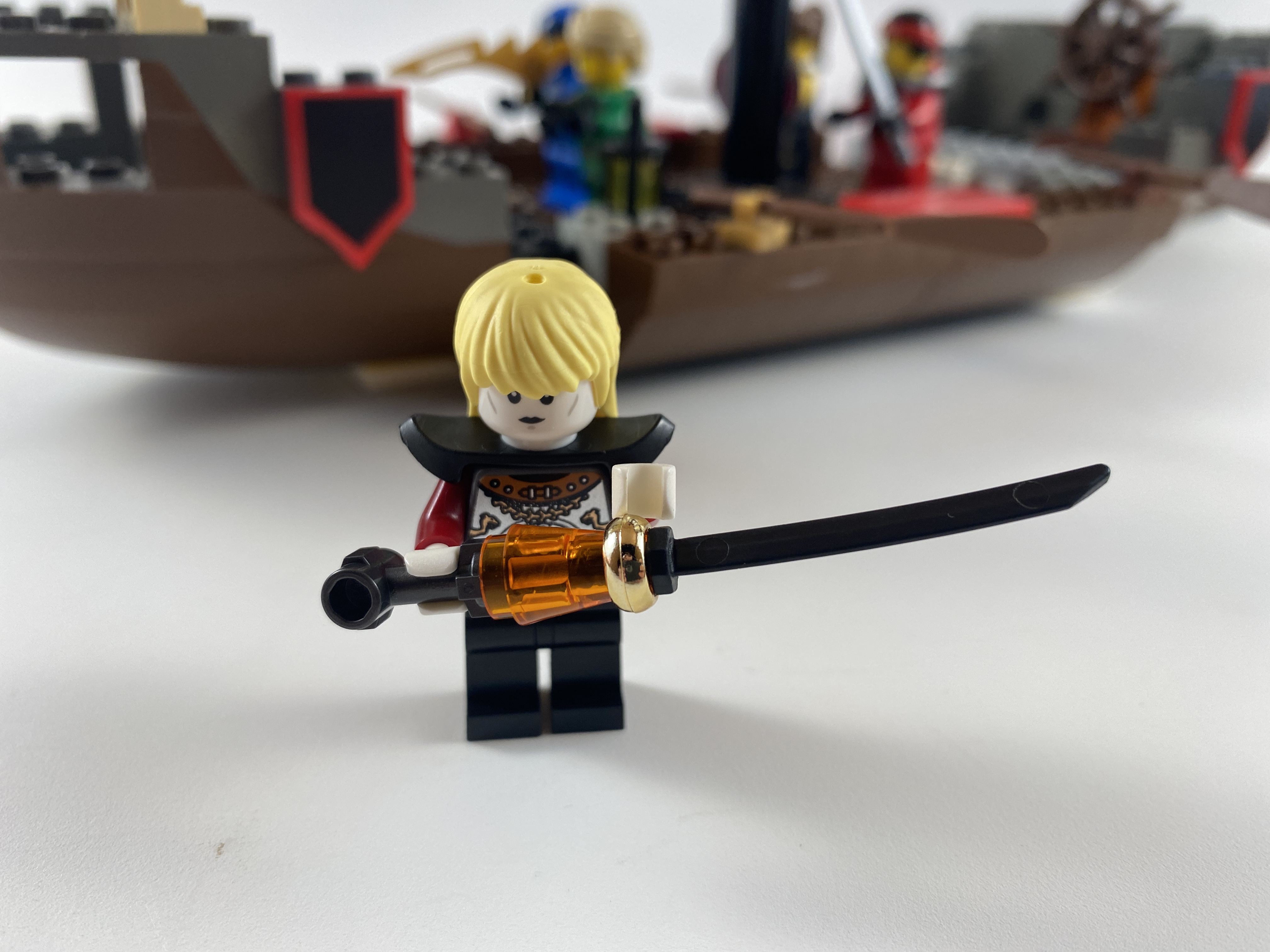 Elric has teamed up with the Ninjago to fight a trio of demons. The ninjas are worthy allies. Stormbringer makes quick work of the red-face pitchfork-wielding duke of chaos.