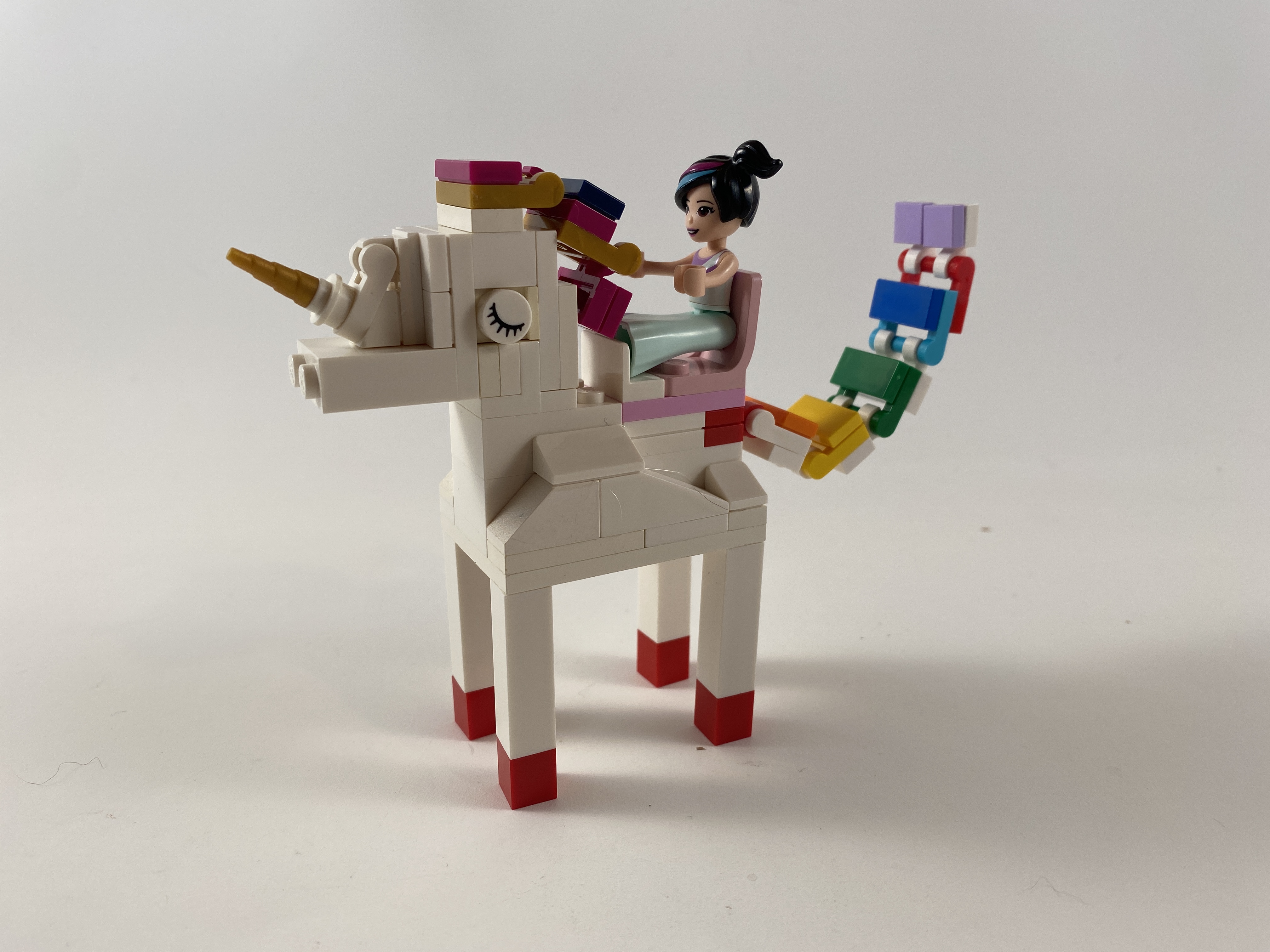 Our skills of unicorn building are evolving. This one has a saddle for Lego Friend, and a most flexible tail.