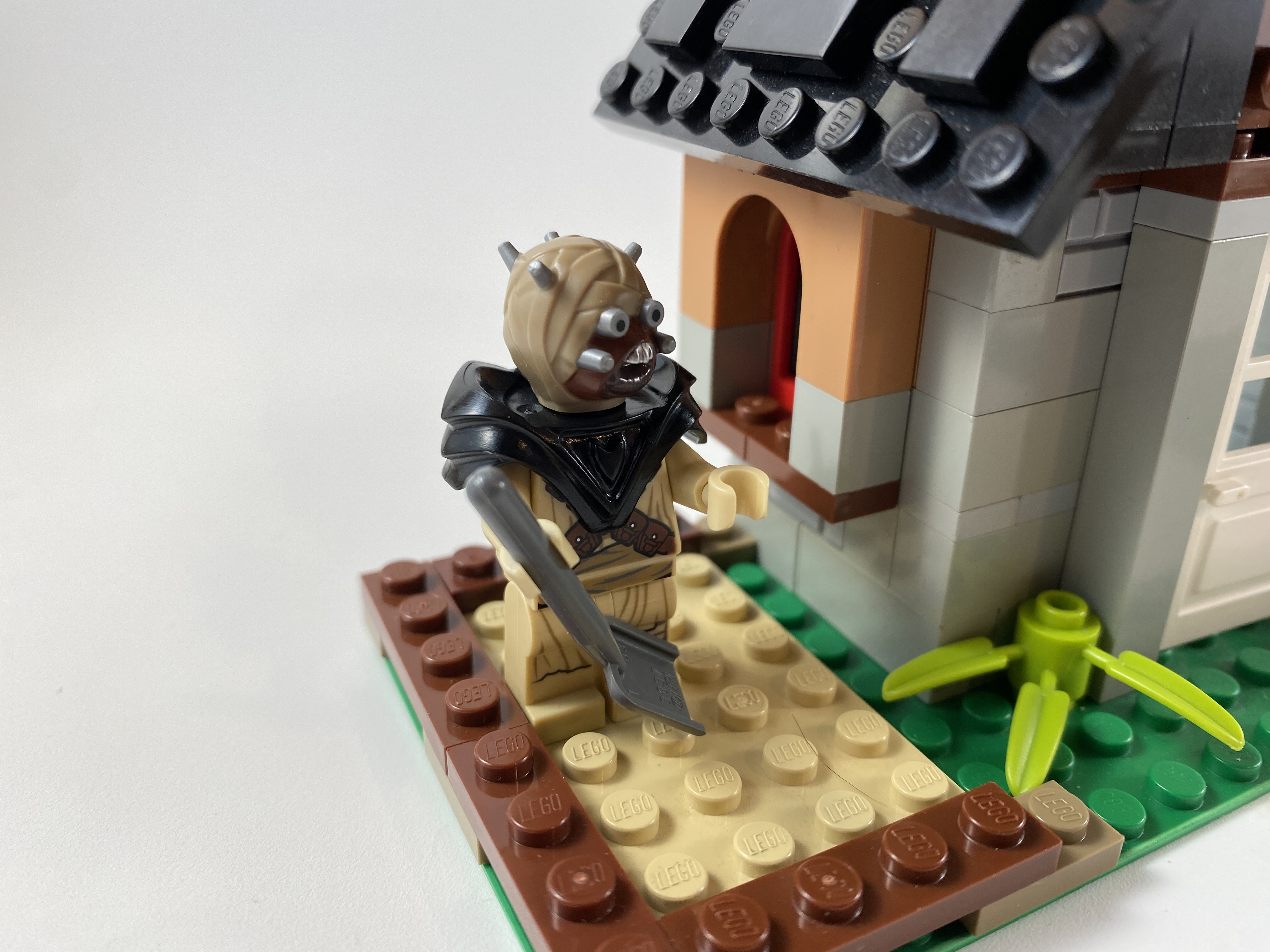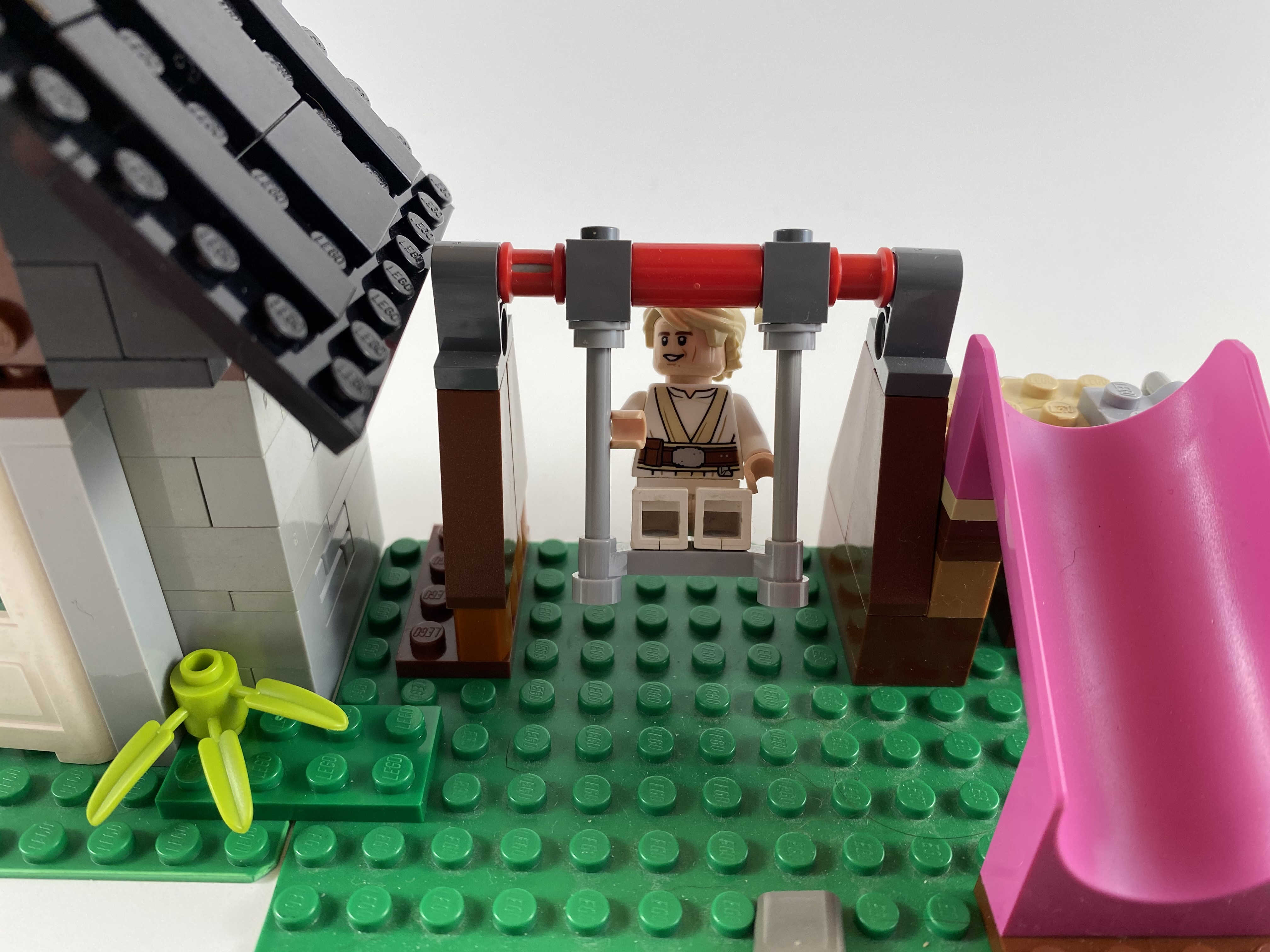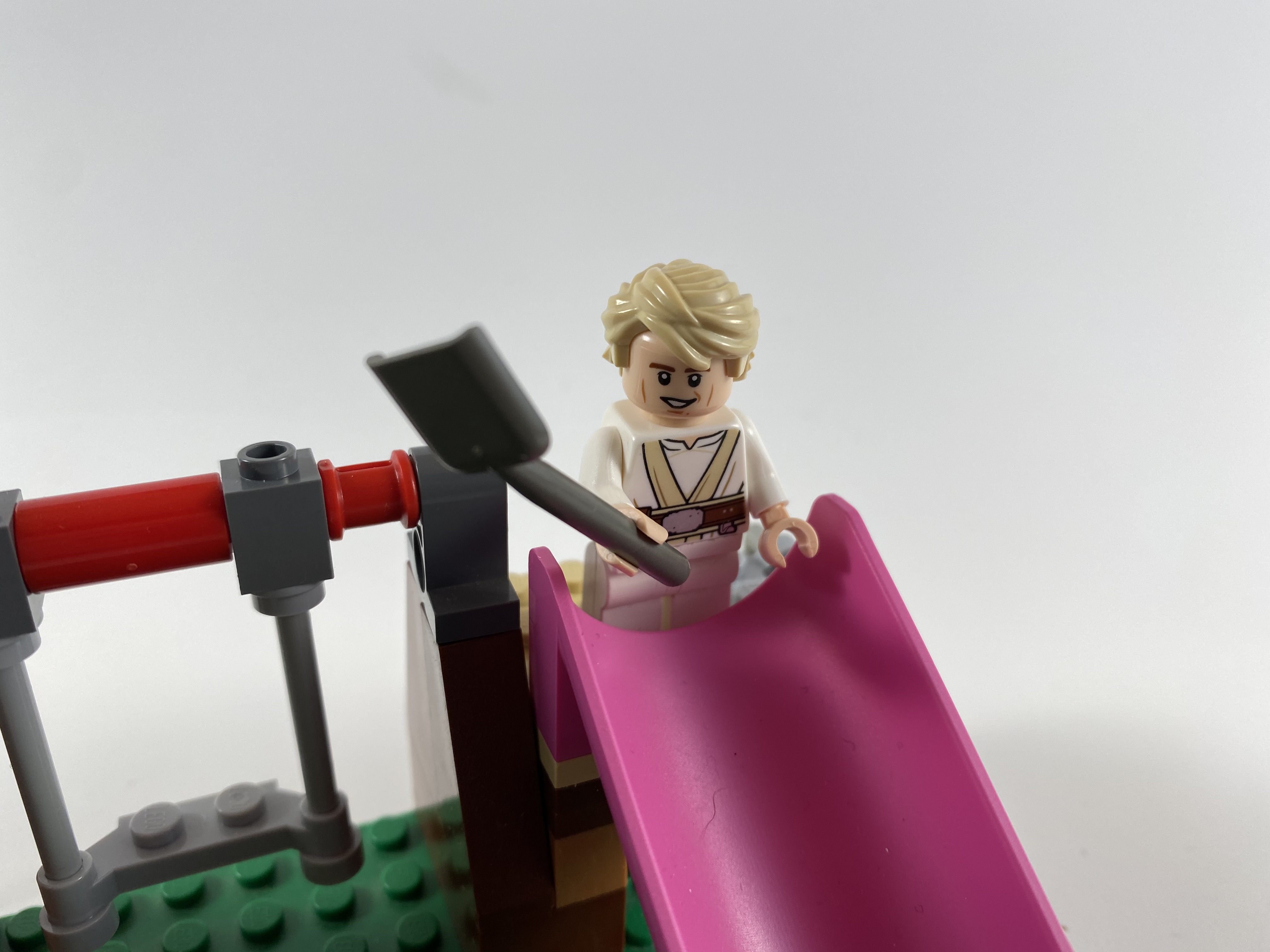 Luke invited the Sand People chieftain over to play at his pastoral home. Shovels are allowed on the slide, but not the swingset.