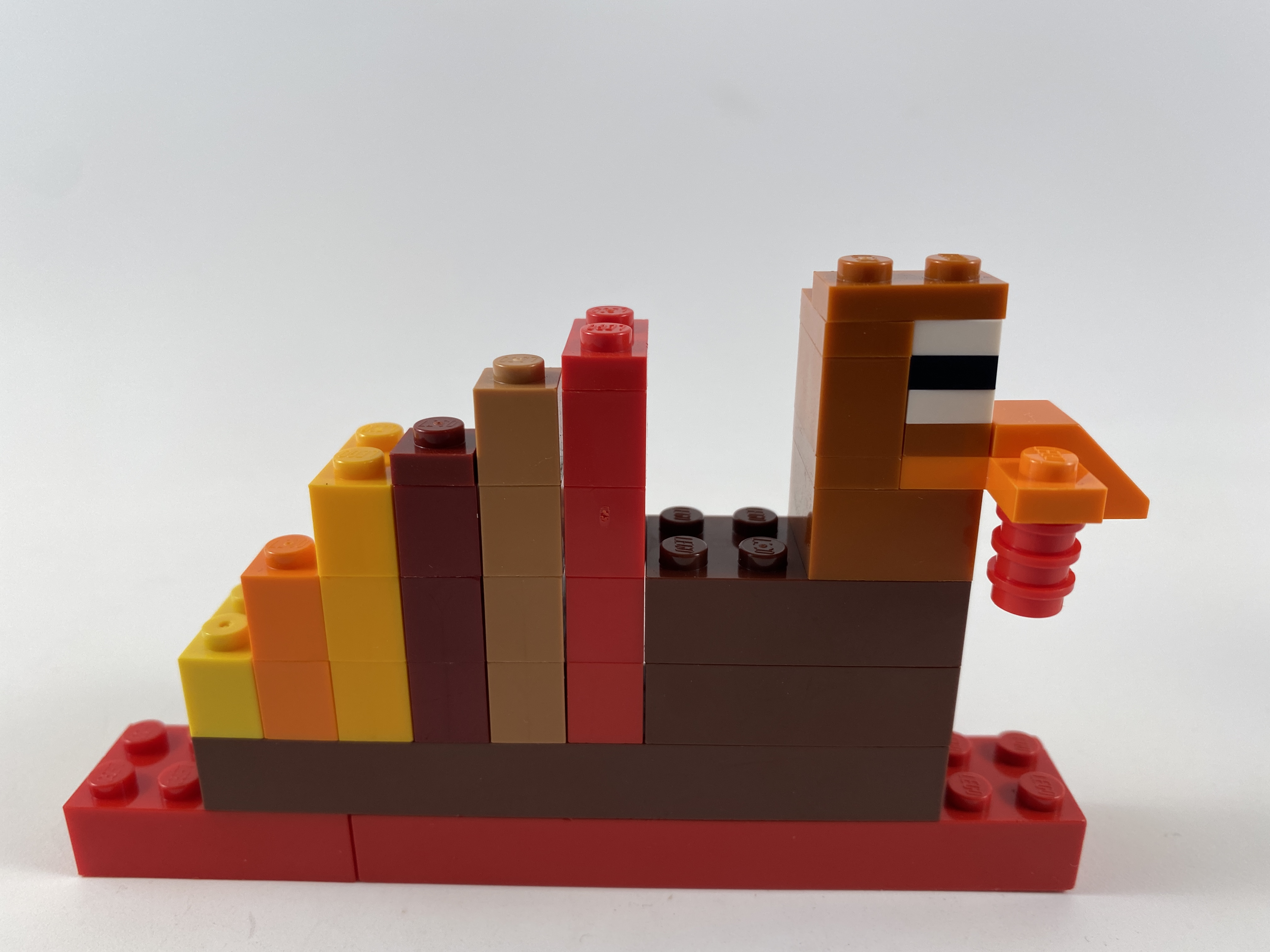 Evelyn made this turkey. It is very beautiful and soft. It has very nice wings that are rainbow, and a nice gobbler, and cute little eyes.