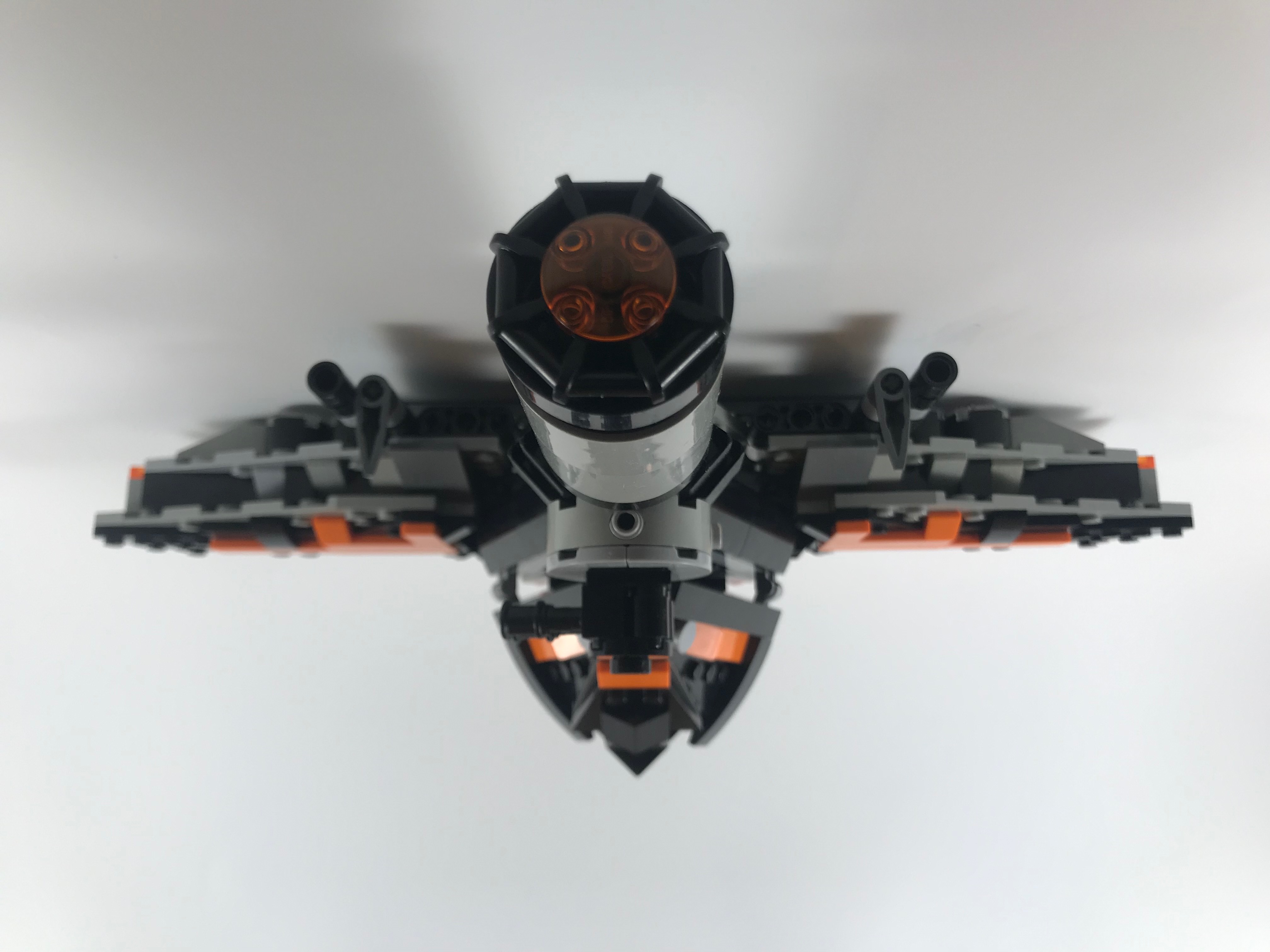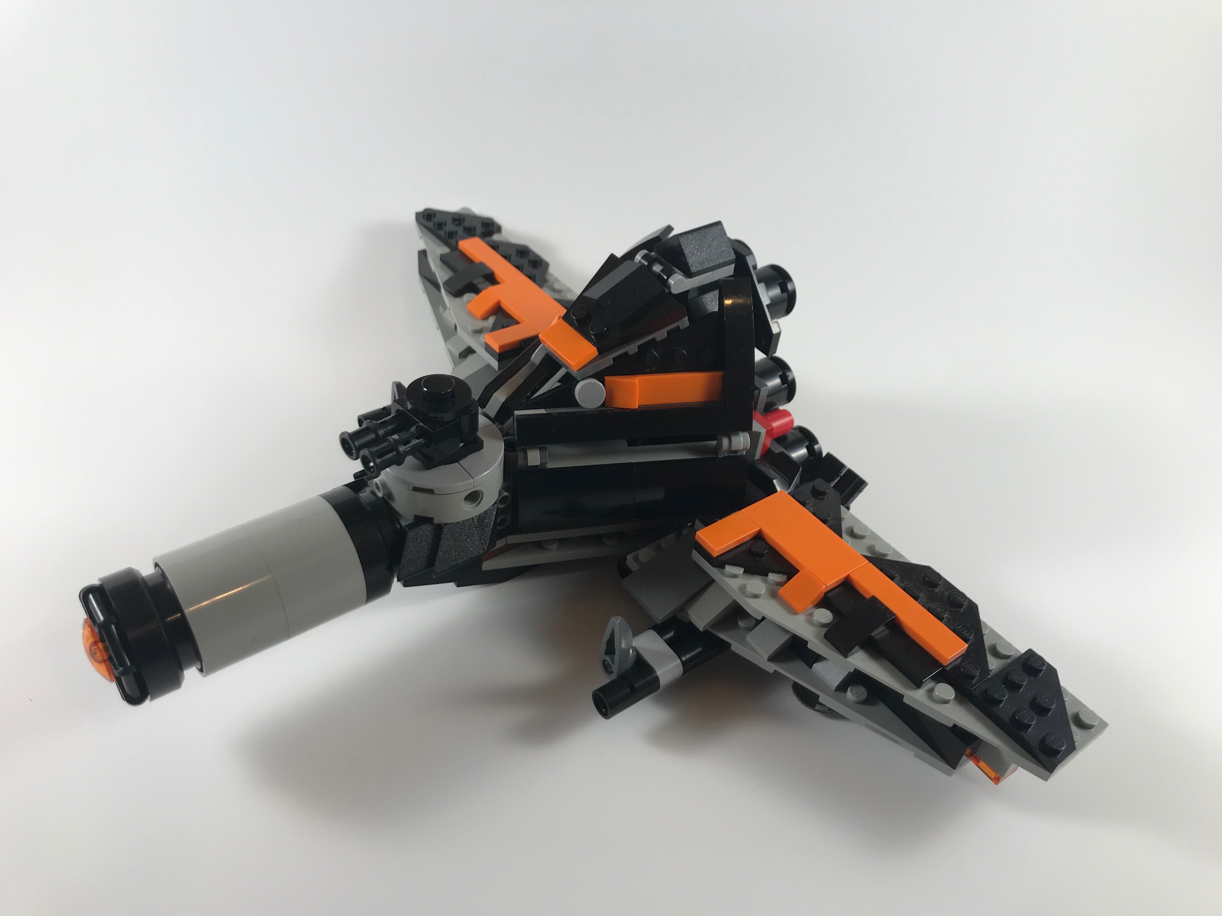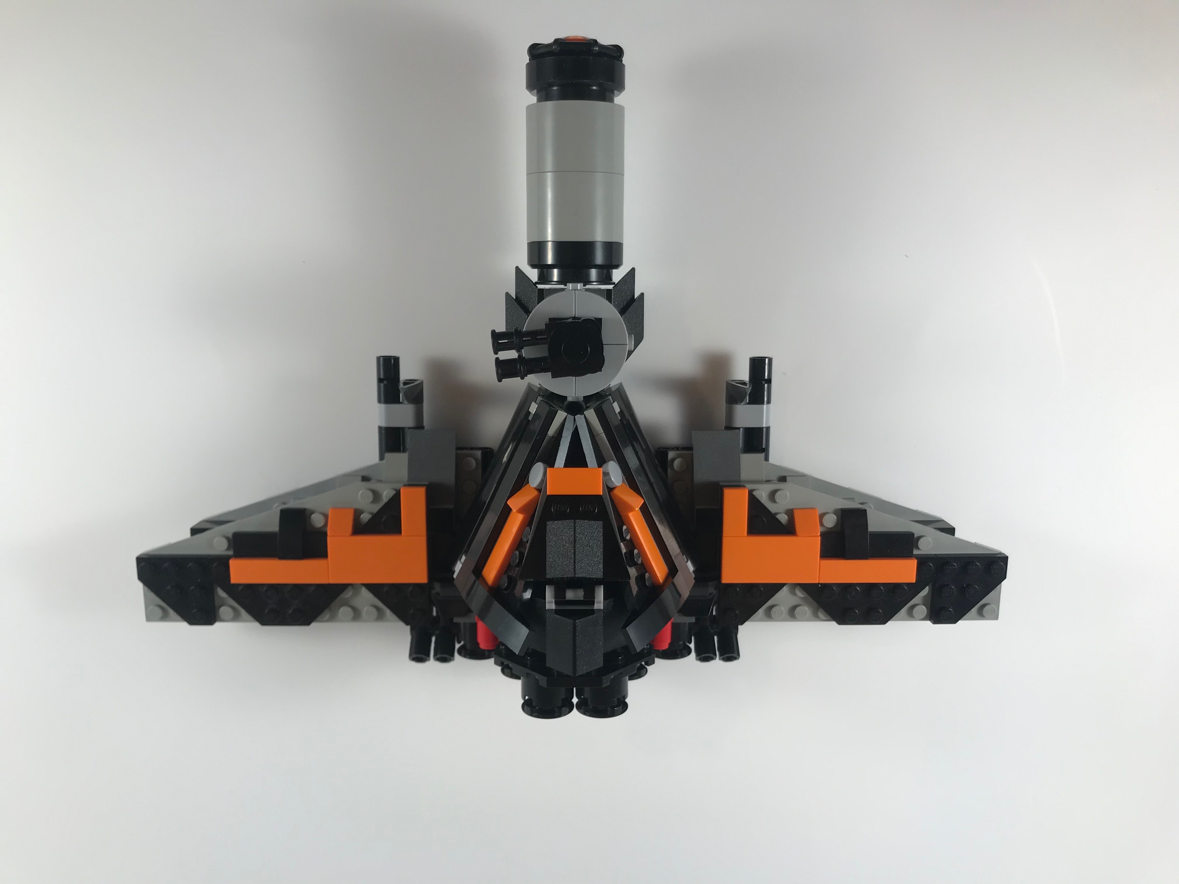 The Pointy Space Fighter has an experimental pointy cockpit. The front is basically a long tube. It has a ton of engines, weapons on the wings and a gun turret that spins.