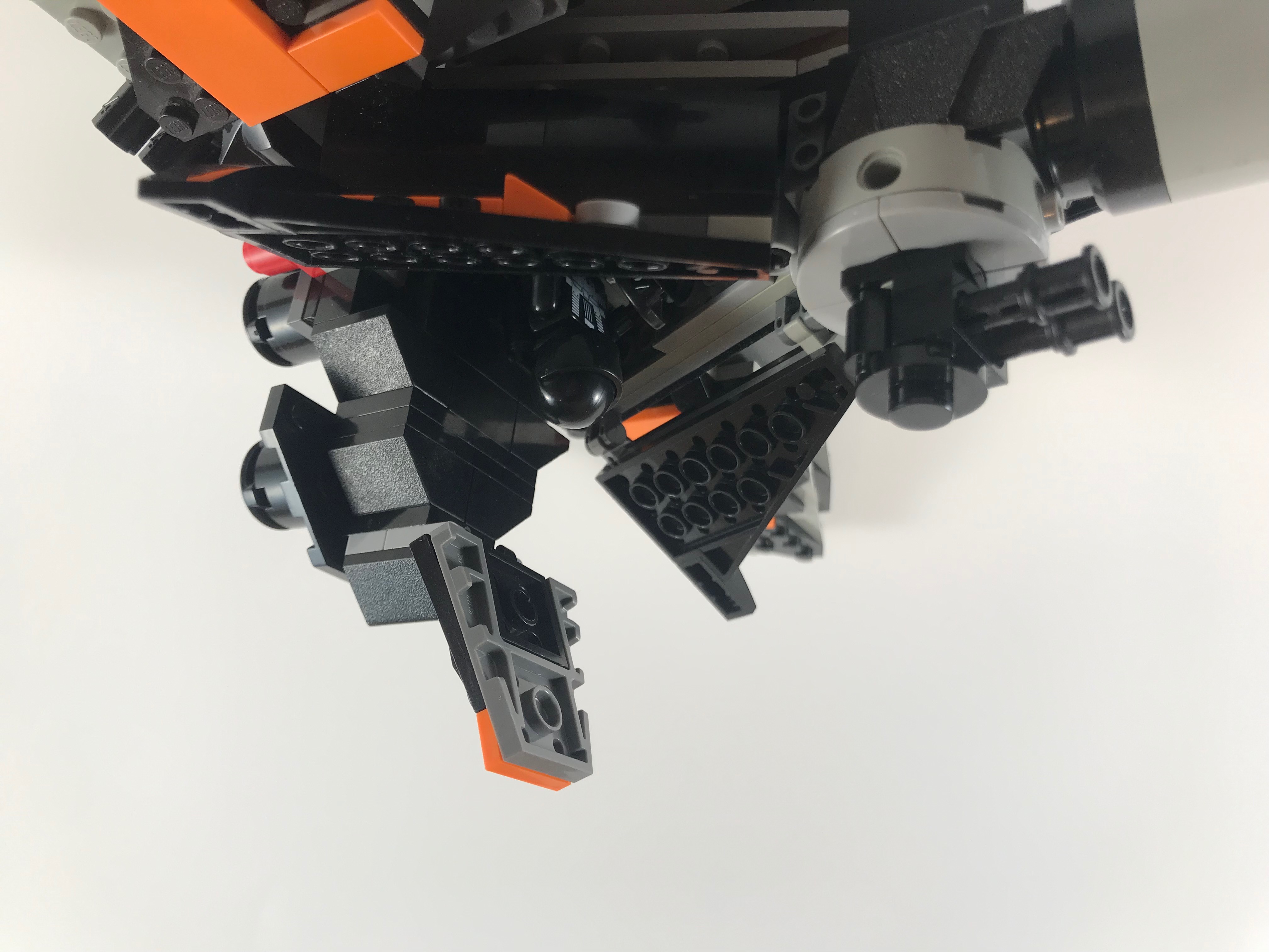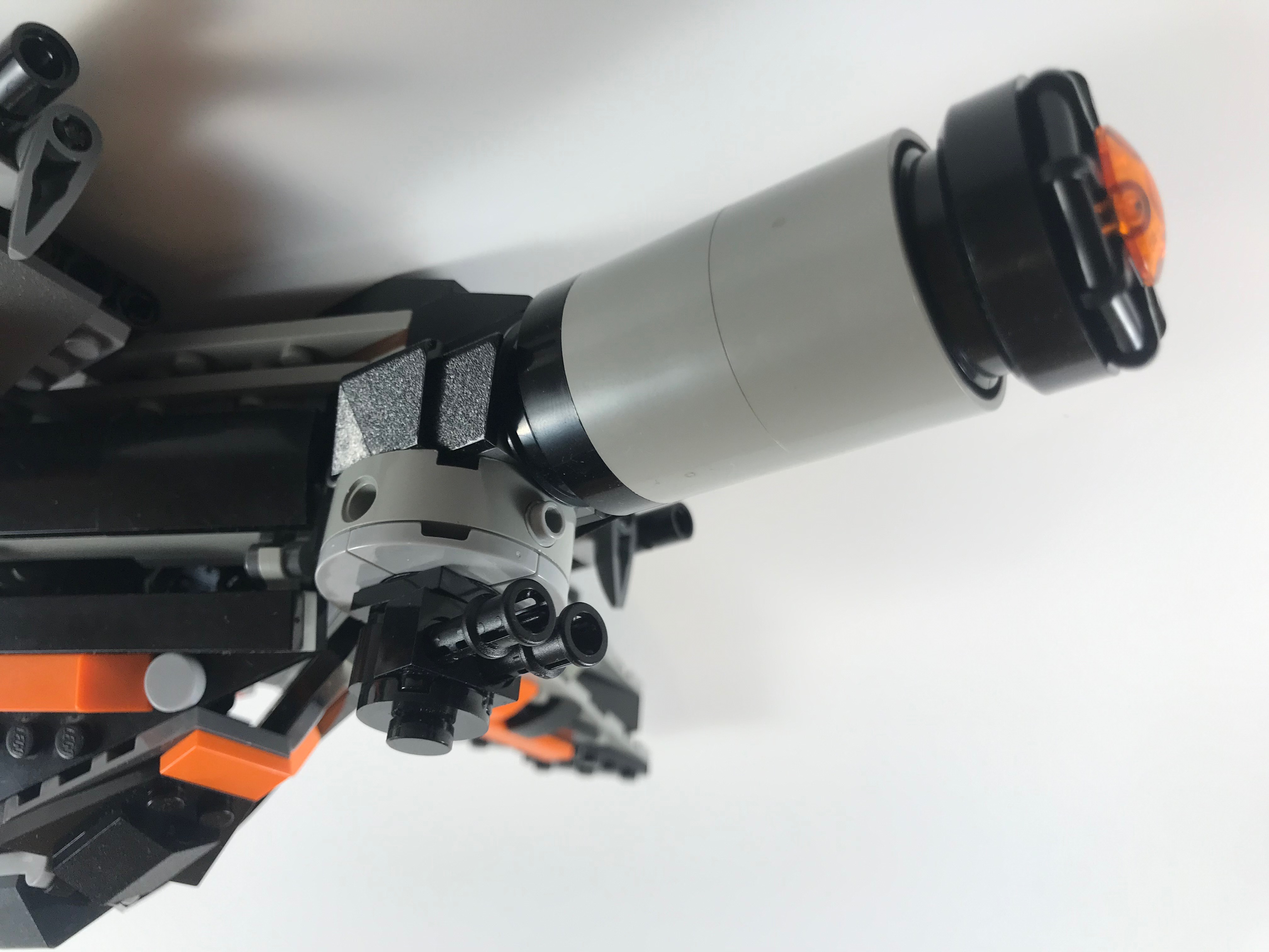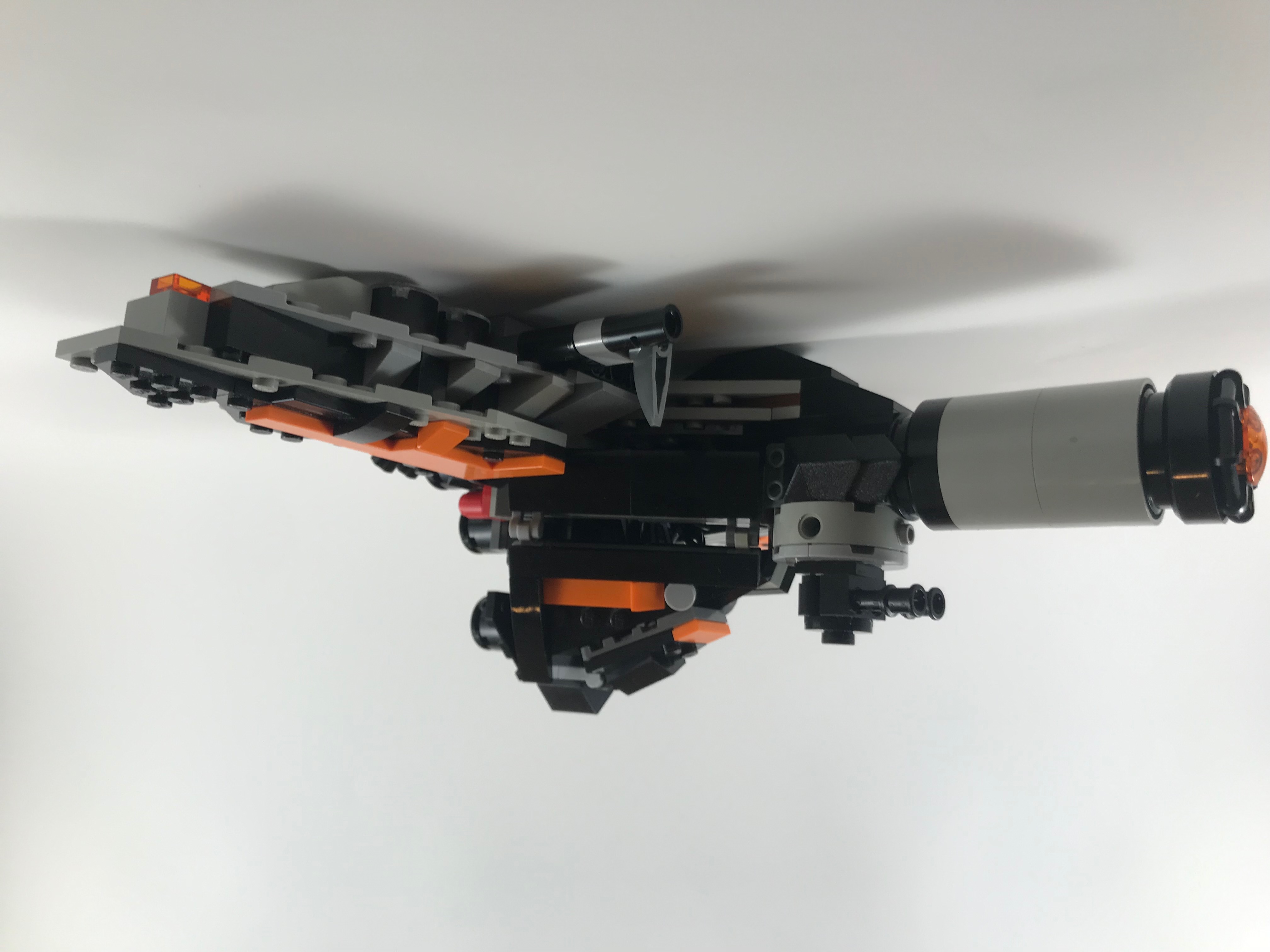 The Pointy Space Fighter has an experimental pointy cockpit. The front is basically a long tube. It has a ton of engines, weapons on the wings and a gun turret that spins.