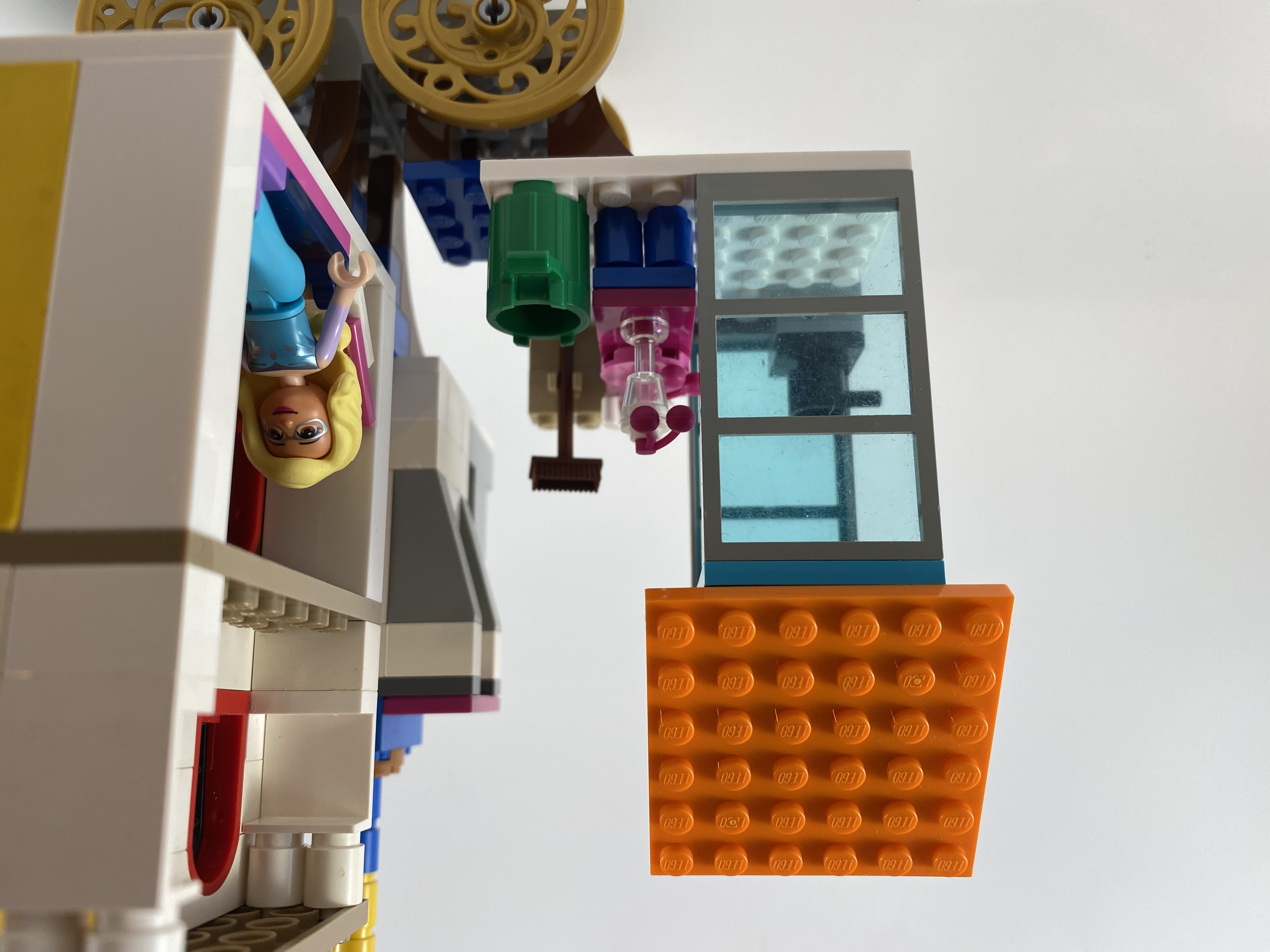 The RHPBC is a mobile town. It takes a full crew of Lego Friends to keep it going. Even one of "The Sisters" is there to keep a lookout.