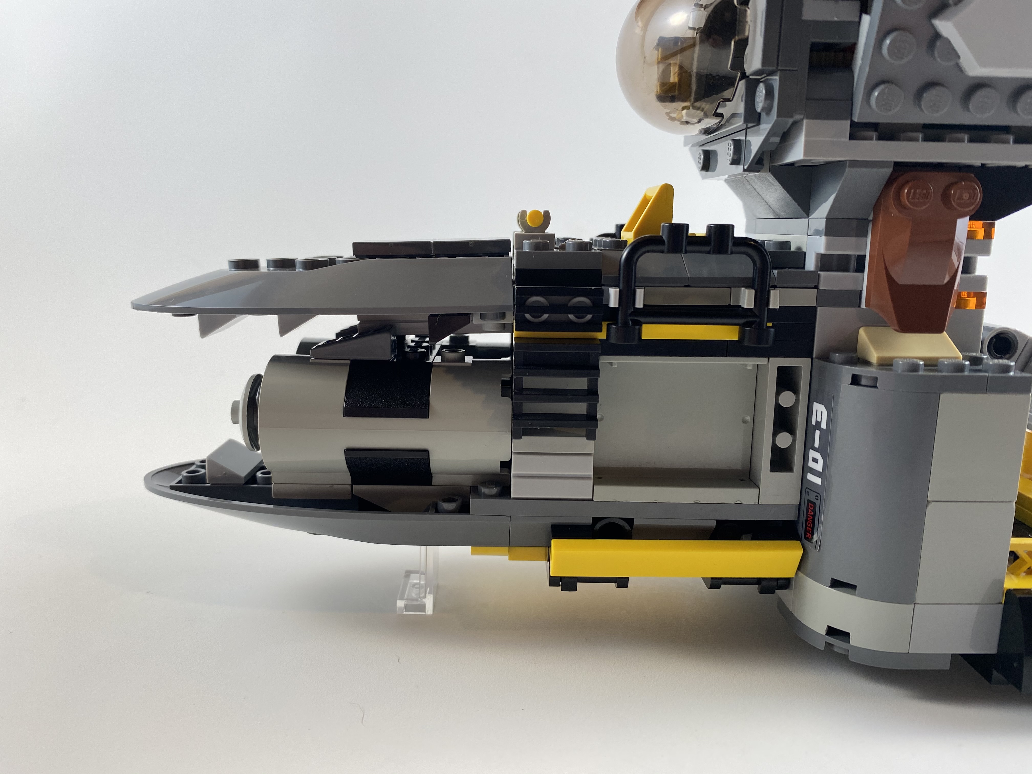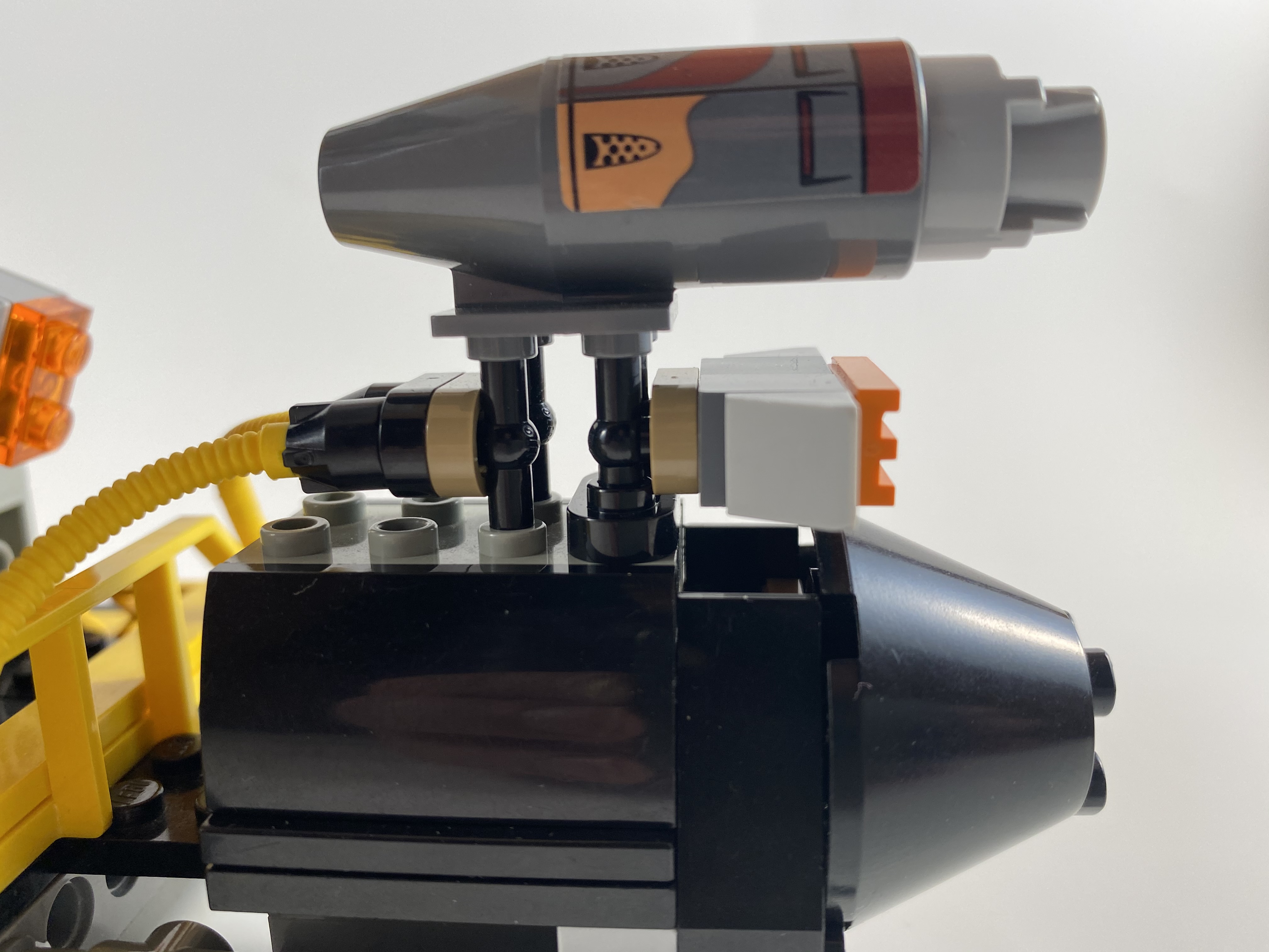 This build was inspired by industrial sci-fi designs such as those found in Hardspace: Shipbreaker. Ok it doesn't really look like the stuff in that game .. it's more in line with my typical gray/black/yellow spaceship theme .. but still I think the idea of a "space tug" fits in the Shipbreaker world.