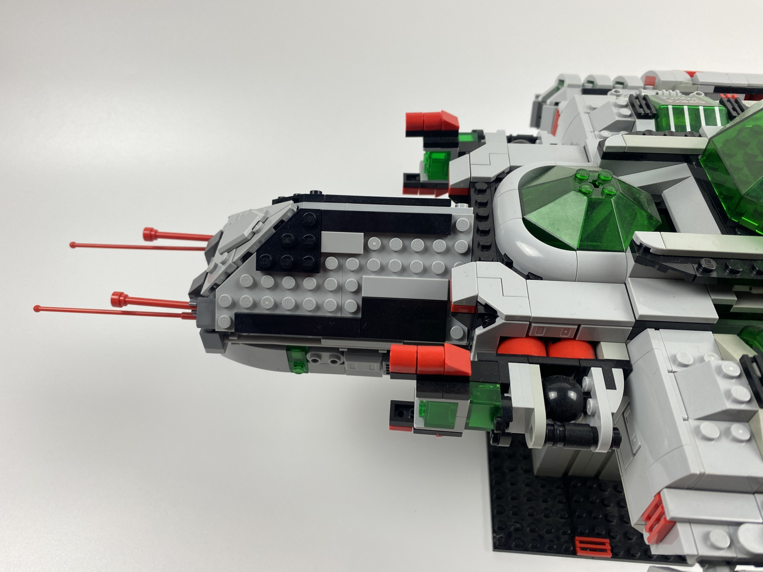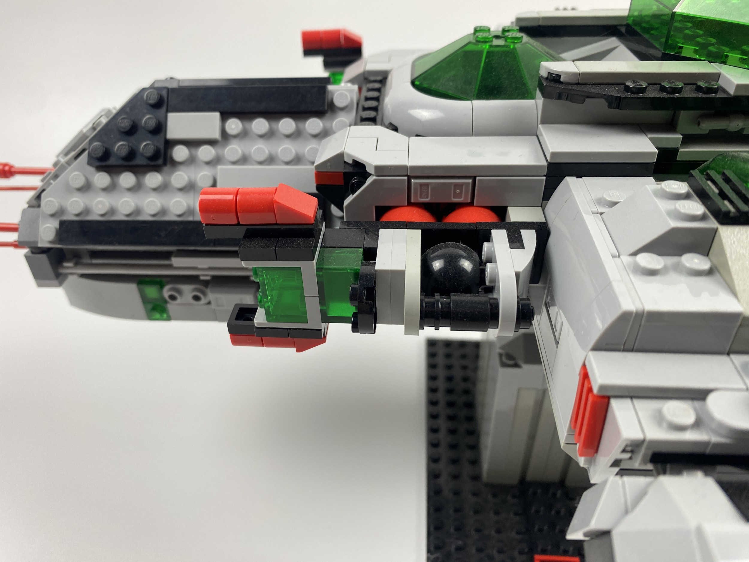 The Space Police chase around their nemesis, the Blacktron, in this hefty little cruiser. Such is the way of things. I rebuilt a few of the classic Space Police jails to slot into the wings.