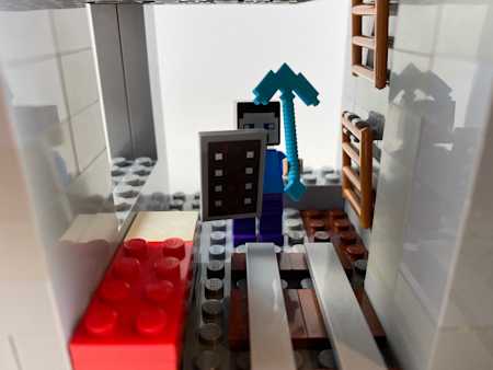 I consider this one of Isaac's largest and most well planned-out build to date. I love the cube shape to the build, and the ladder that goes up to the top section, and the accurate looking minecart track.