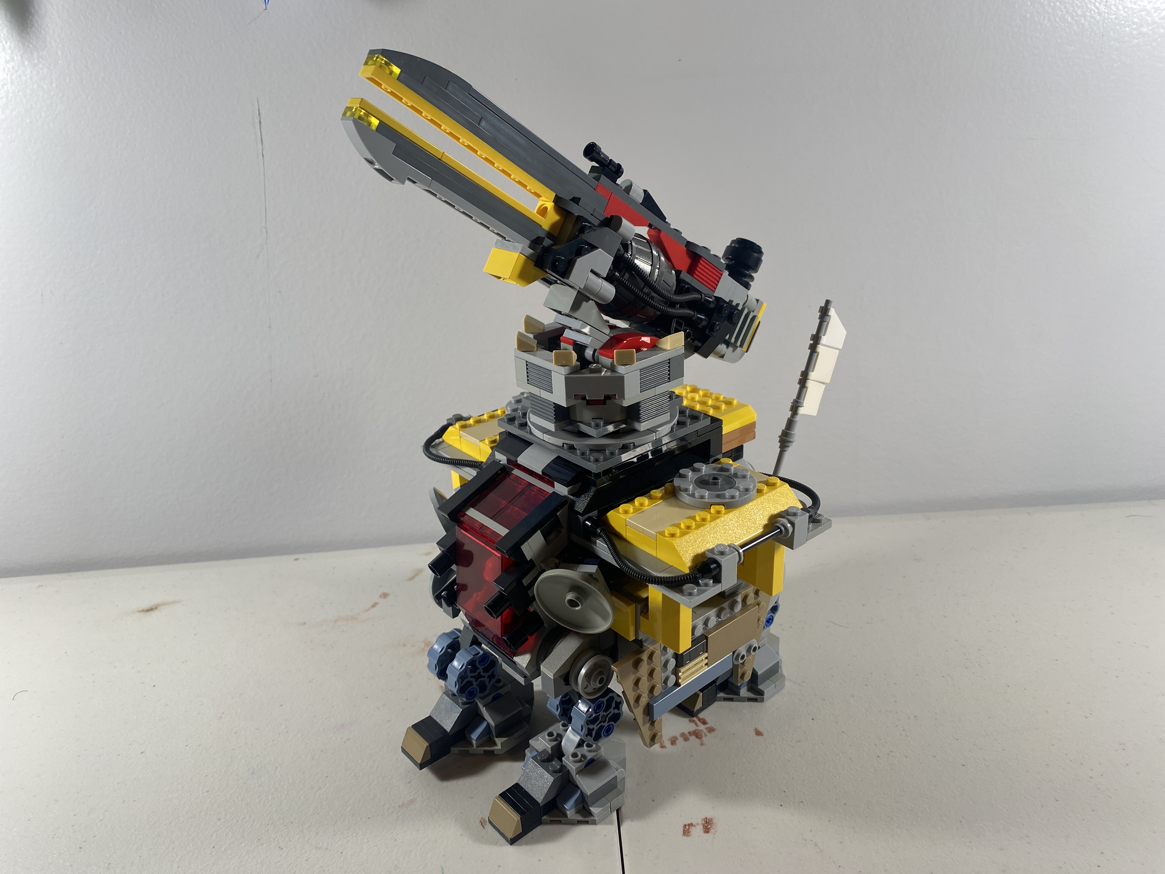 Well, the Elephant is too big to fit in my photobooth. That is because of it's giant railgun. If it falls headfirst into quicksand while roaming the desert, the flags in back will stick up so its friends can find it.