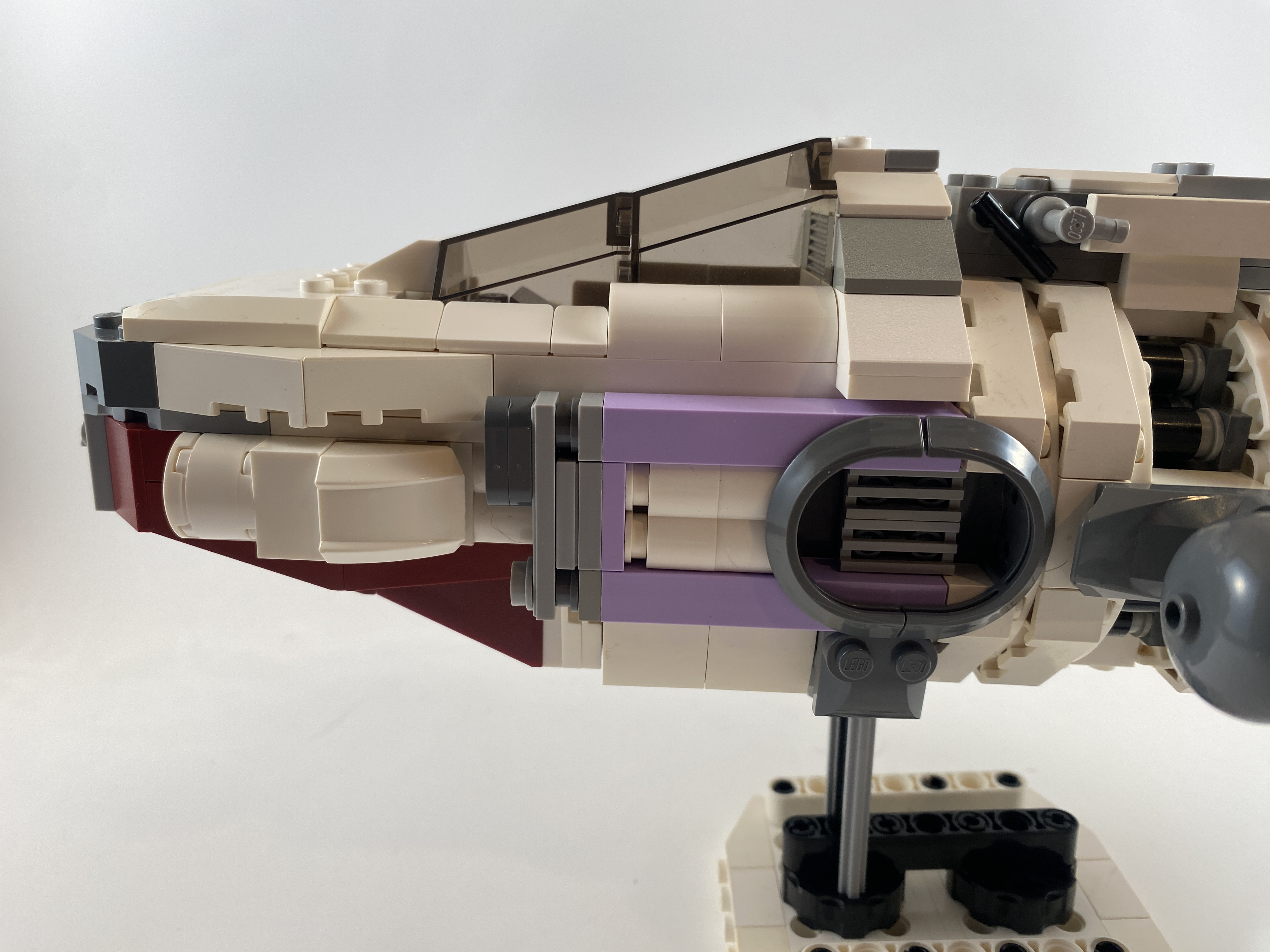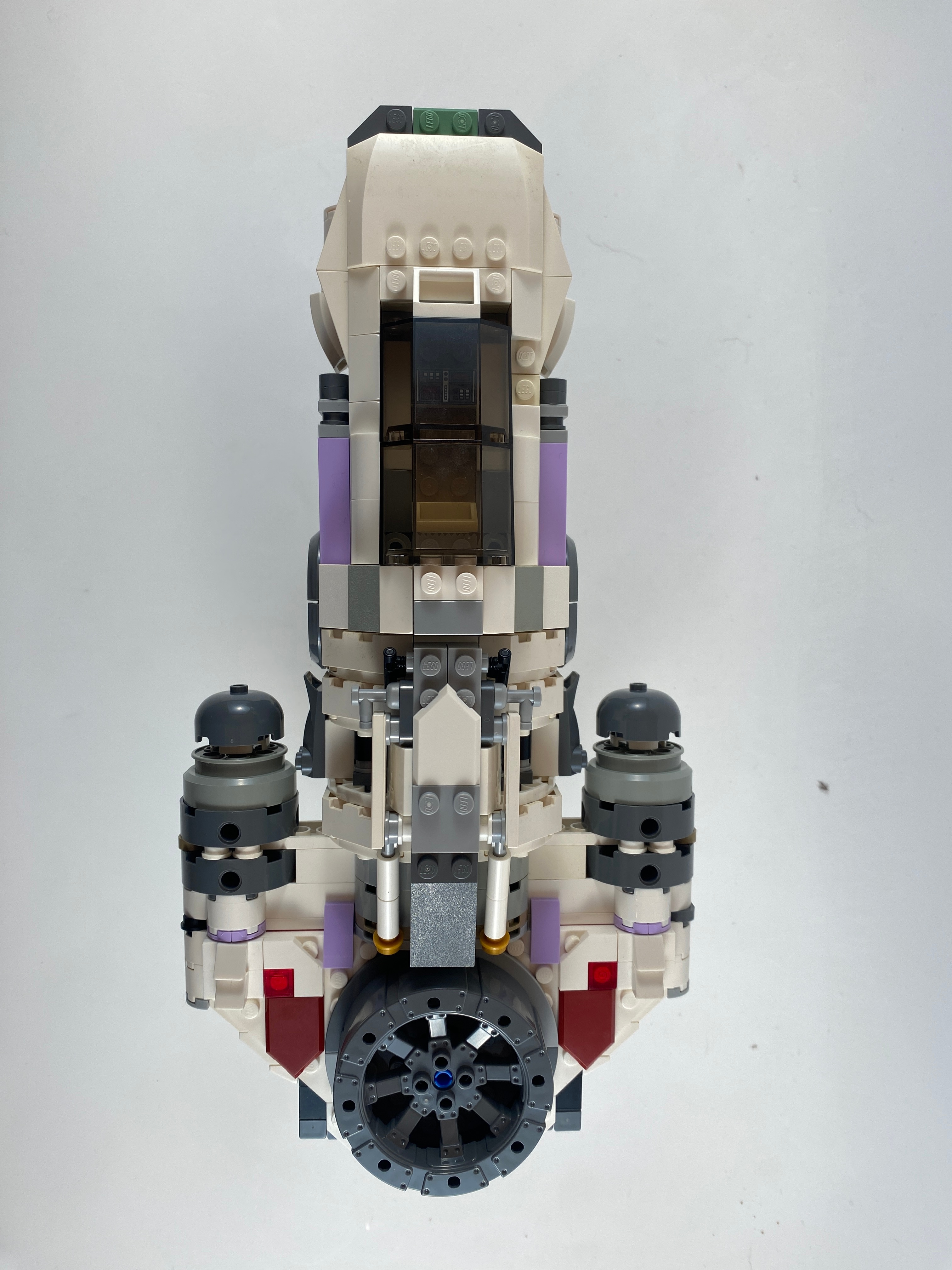 I did a big, big sorting of the LEGOs. I found that I had ample pieces for a big white spaceship. This build has lots of sections with different orientations.